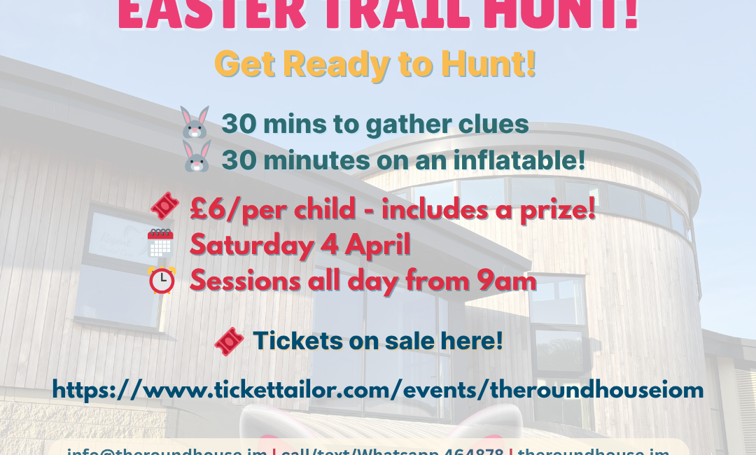 Join us at The Roundhouse, Braddan for an exciting Easter adventure packed with clues, treats, and bouncy fun!