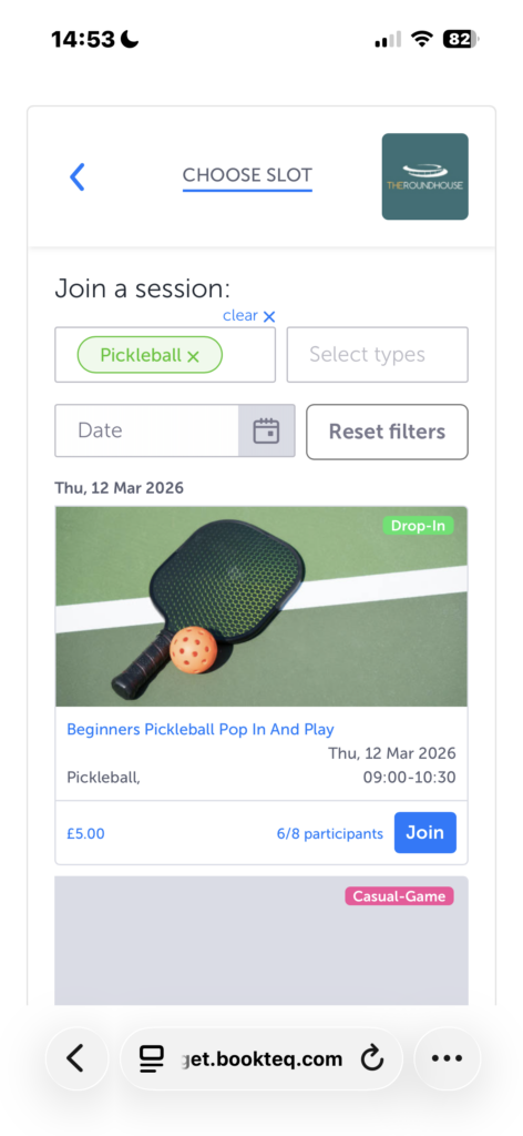 What are sessions? Sessions are multi-ticketed bookings shared with other customers, such as Soft Play & Pickleball Pop in & Play Sessions.